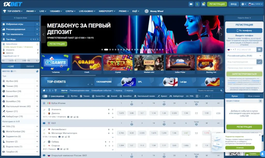 1xBet — это территория тех, кто хочет не просто играть, но и выигрывать на спортивных ставках. Официальный сайт этой международной букмекерской конторы предлагает широкий выбор игровых событий с маржой 4-7%, качественные слоты в казино и множество других развлечений. Платформа работает по лицензии Кюрасао и обслуживает более 1,5 миллиона активных игроков из 50+ стран мира.